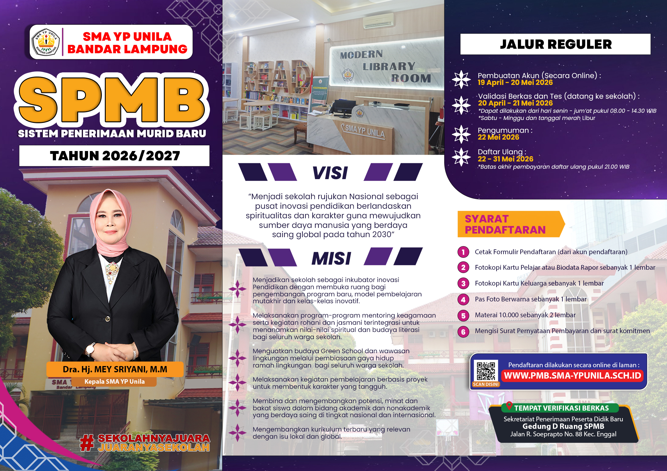 ALUR PENDAFTARAN SPMB SMA YP UNILA JALUR REGULER TAHUN 2026 :